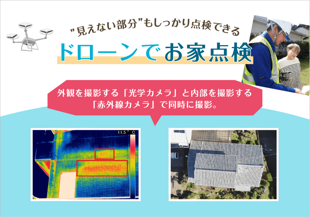 目視・打診調査に併せ、赤外線カメラ、ドローン空撮調査も実施できるのもタイヨーの強み!