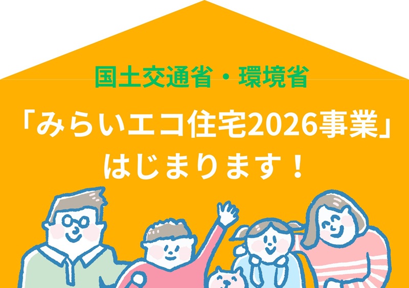 現在行っている「子育てエコホーム支援事業」の後継・発展的な位置づけとなるのが、「みらいエコ住宅2026事業」。
