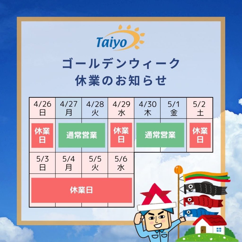 誠に勝手ながら、下記の期間をゴールデンウィークの休業とさせていただきます。